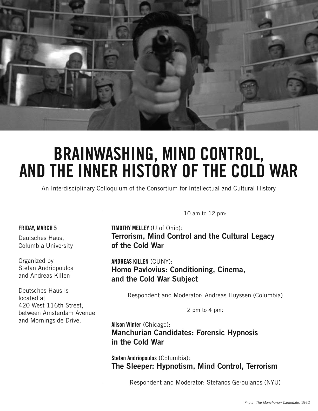 Workshop on “Brainwashing” Posted on February 7, 2010 by andreaskillen Posted in Announcements, Conferences & workshopsTagged Cold War, Human sciences Share this: Share on Facebook (Opens in new window) Facebook Email a link to a friend (Opens in new window) Email Share on X (Opens in new window) X Like Loading... Related