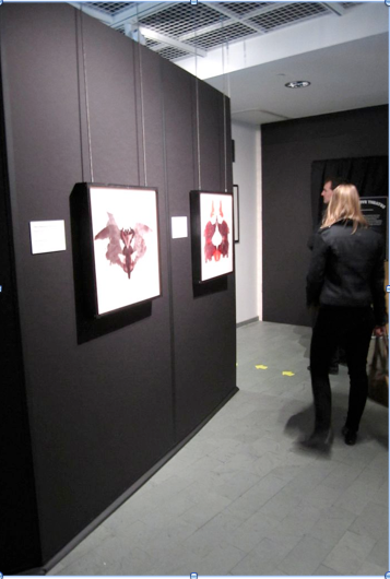 Among the many provocative artistic interventions found in this exhibit are four large lenticular reproductions of Rorschach cards. By moving to either side of each lenticular print different features and emphases in the inkblots are revealed. The effect is that as you move from left to right it is as if the inkblot itself is revealing a range of potential interpretations that could land you anywhere along the psychiatric spectrum.