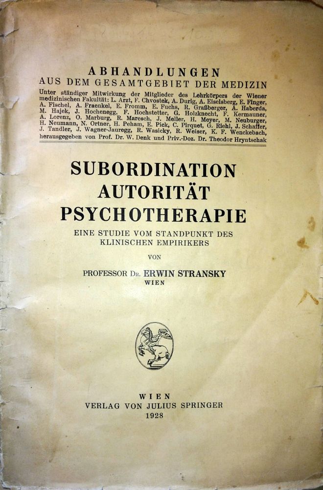 Front cover of Erwin Stransky, Subordination, Autorität, Psychotherapie (Vienna: Julius Springer 1928).