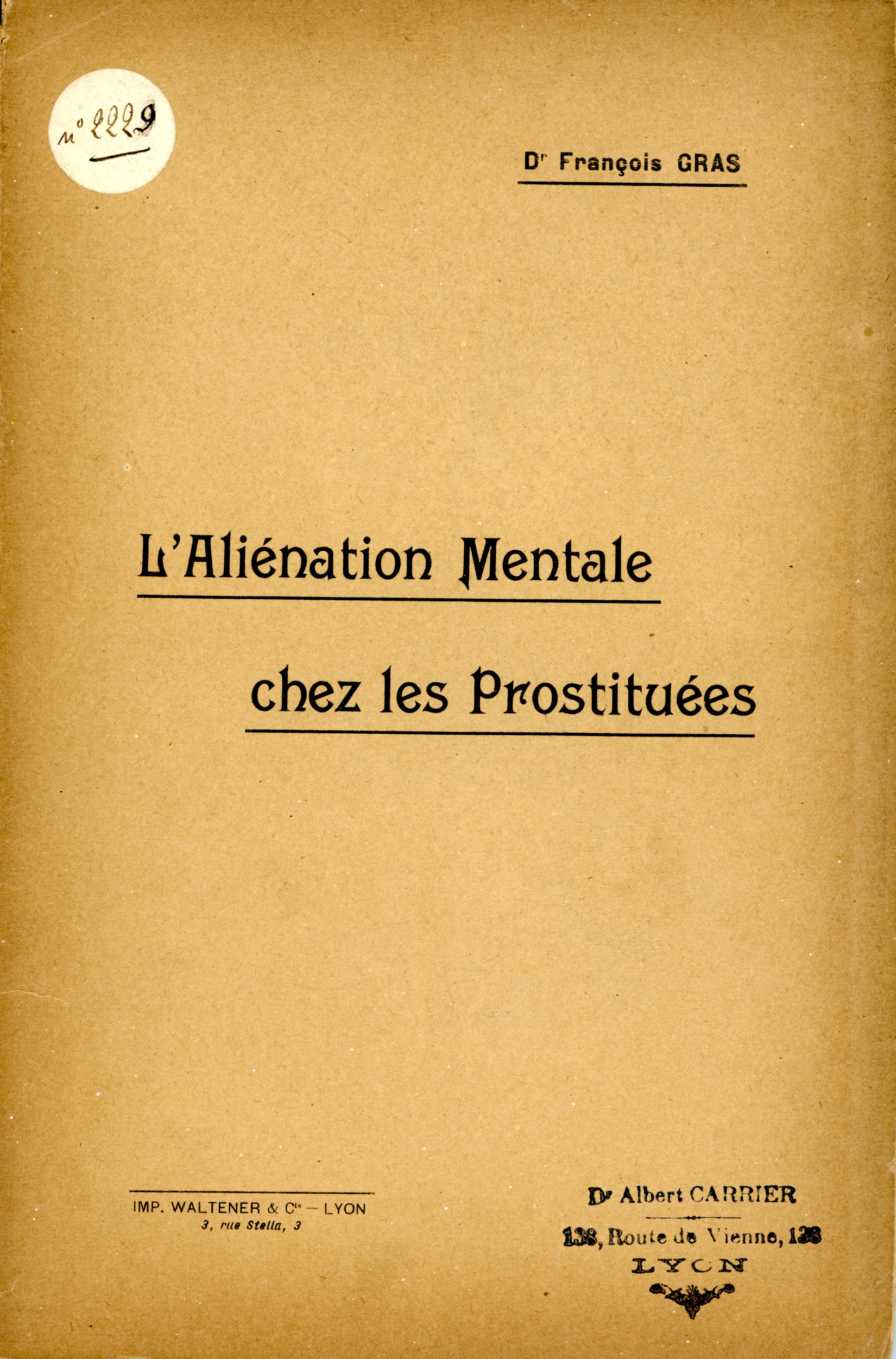 Gras, François. L’aliénation mentale chez les prostituées Lyon, Imprimerie Mougin-Rusand, Waltener & Cie successeurs, s.d. (1901).