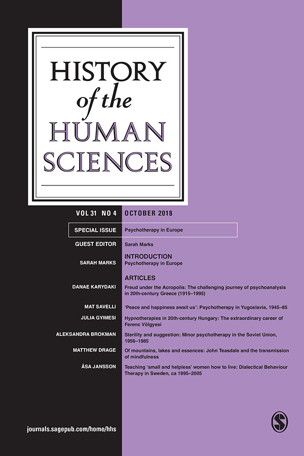 “Psychotherapy was an invention of European modernity, but as the 20th century unfolded, and we trace how it crossed national and continental borders, its goals and the particular techniques by which it operated become harder to pin down. This introduction briefly draws together the historical literature on psychotherapy in Europe, asking comparative questions about the role of location and culture, and networks of transmission and transformation. It introduces the six articles in this special issue on Greece, Hungary, Yugoslavia, Russia, Britain and Sweden as well as its parallel special issue of History of Psychology on ‘Psychotherapy in the Americas’. It traces what these articles tell us about how therapeutic developments were entangled with the dramatic, and often traumatic, political events across the continent: in the wake of the Second World War, the emergence of Communist and authoritarian regimes, the establishment of welfare states and the advance of neoliberalism.”