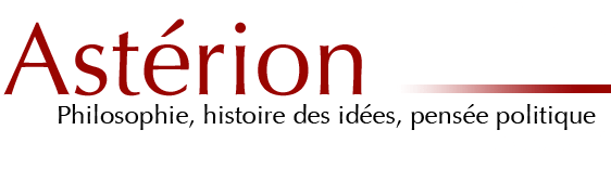 Astérion est une revue exclusivement électronique, soutenue par l’École normale supérieure de Lyon. Elle est l’expression des activités du CERPHI (Centre d’Études en rhétorique, philosophie et histoire des idées, de l’Humanisme aux Lumières) et du laboratoire Triangle / Action, discours, pensée politique et économique (CNRS, UMR 5206). Deux axes de publication y sont privilégiés : l’histoire de la philosophie, des sciences et des sensibilités dans la constitution de la modernité et l’histoire de la pensée politique en Europe, du XVIe au XXe siècle.
