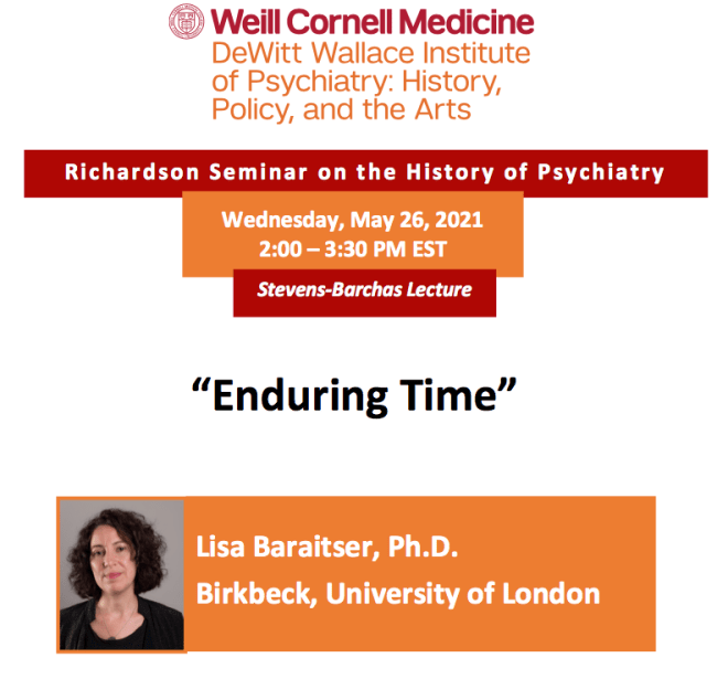 The Richardson Seminar on the History of Psychiatry will host the last meeting of this academic year on Wednesday, May 26, at 2PM EST. All are welcome.