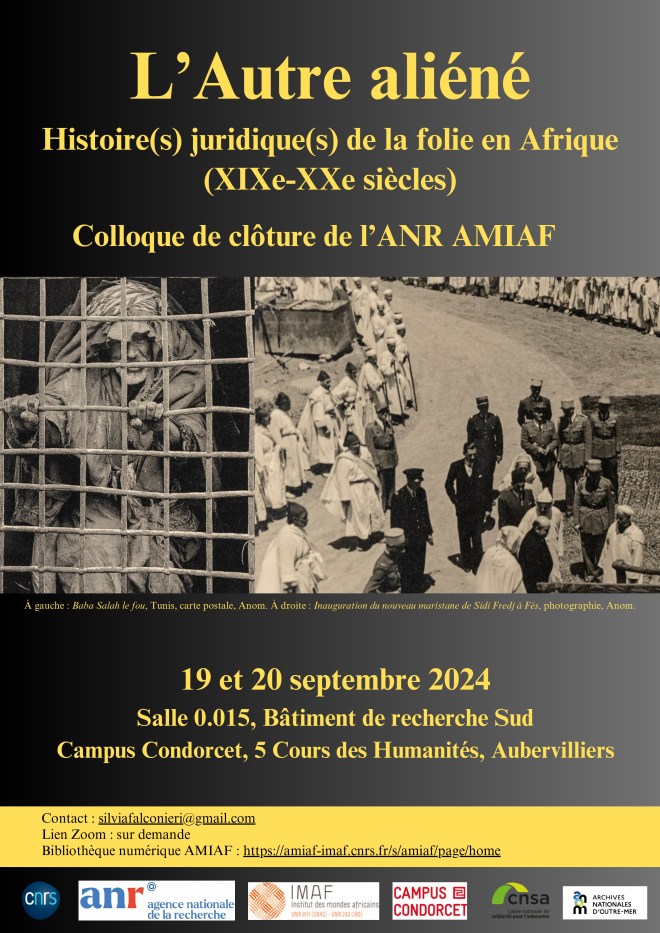 This conference marks the conclusion of the AMIAF research program, which explored the double discrimination faced by individuals considered mentally ill and indigenous in French Africa. Funded by the ANR, this multidisciplinary project analyzed the legal and administrative treatment of mental illness during the colonial period.