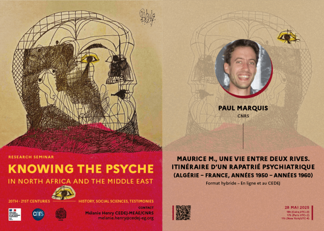 Ce séminaire souhaite rendre compte du renouveau des travaux d’histoire et de sciences sociales surla psyché comme objet de savoirs et de soin en Afrique du Nord et au Moyen-Orient. Son objectif est de mettre en valeur une approche polycentrique de l’histoire de la psychiatrie, de la psychanalyse et de la psychologie. Il se concentre ainsi surles XXe et XXIe siècles, plaçant au cœur de la réflexion les dynamiques des États indépendants, considérées dans leur profondeur historique.